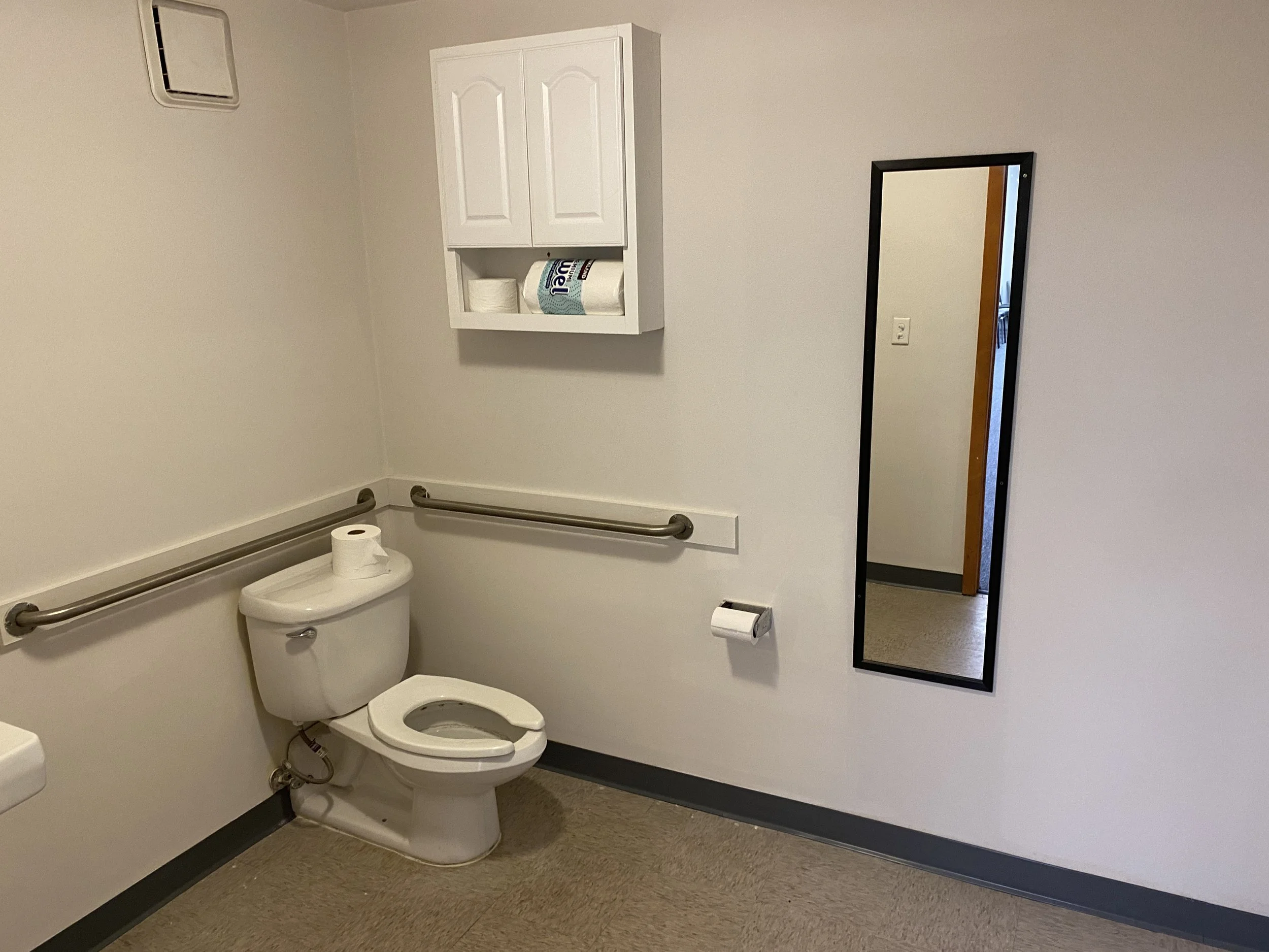 Parking, wifi, tables/chairs. ADA accessible. First floor, bathroom in space.